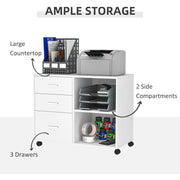 Mobile Printer Stand, 3 Drawers, 2 Shelves, 80x40x65 cm