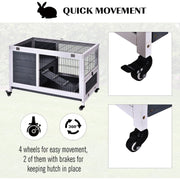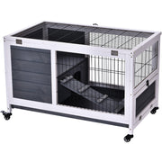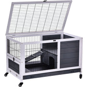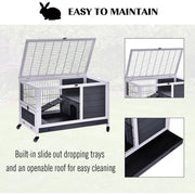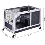 This PawHut rabbit hutch offers your furry friend a private space indoors. Crafted from fir wood for toughness and durability, it has a compact 59cm x 909cm design. Features include a bottom house, rooftop and ramp, an openable roof, locked doors, slide-out tray, metal wire fencing and four wheels (2 lockable). Keep an eye on your bunny and move it around with ease.