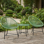 This set includes 2 Acapulco-style chairs and a matching coffee table, all made to be sturdy and easy to care for. The woven plastic rattan helps keep you cool, while the glass tabletop is simple to wipe clean after use.