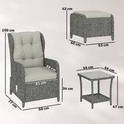 The set is lightweight yet sturdy, with a weather-resistant aluminium frame and PE rattan that’s built to last. Thick cushions add comfort, while the adjustable backrests help you find the right position for reading or relaxing. The glass-topped table is easy to wipe clean and has a lower shelf for extra storage.