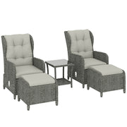 This 5-piece garden furniture set is designed for anyone who wants a simple way to unwind outside. It includes 2 reclining armchairs, 2 footstools, and a handy side table, making it easy to enjoy your patio, balcony, or garden.