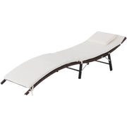 Folding Rattan Sun Lounger, Cushion and Pillow, Brown