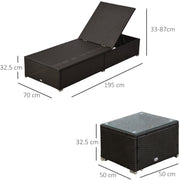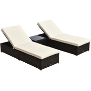 3PC Rattan Sun Lounger Sets, Side Table, Dark Coffee