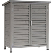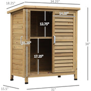 Keep all your garden essentials efficiently organised and beautifully stored away with this garden storage cabinet from Outsunny. Crafted from solid fir wood with a top coat this cabinet is resistant to stains water corrosion and mildew to ensure long term use against everyday wear and tear. Inside are two spacious and sturdy shelves with shutter style doors that provide enough ventilation when closed. On the top sits a tilted roof with a felt top to stop any water build-up. It's the perfect storage compartment for your gardening tools outerwear and shoes and more.
