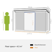 This Garden Shed from Outsunny is a stylish way to keep your garden and outdoors tidy and organized. For every season there are various garden tools that must be stored properly. Our tool shed helps you maintain order, whether for tools, gloves, rubber boots, hoses or the like. Made from sturdy and durable colour-coated steel-plate and Polypropylene components, it has a protective film on metal panels for long term use, and also vents for airflow. The whole structure is painted to blend in with surroundings and can be used as a storage solution or as a work shed.