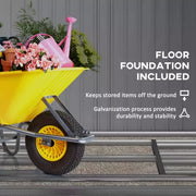 Keep your garden equipment and outdoor essentials locked away securely with this fantastic metal shed. It's made from galvanised steel for enduring reliability. With a sloped roof sitting on the top to help prevent water stagnating and rust forming, it is finished with a protective weather coating and floor foundation so you have everything you need to install this piece when it arrives. The perfect home for all your outdoor tools and gear.
