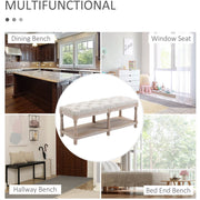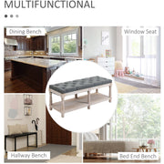 Treat yourself to the luxurious convenience of this HOMCOM bench. Boasting a strong wooden frame and six stylish, smooth-curved legs supporting a plush tufted top, it promises a cosy spot to slip off and slip into shoes. The lower shelf offers a convenient spot to store footwear and keep the area tidy, and plastic foot pads protect your floors. Never have a shoe-related mishap again!