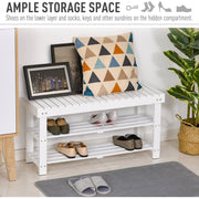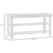 It's time to organise your shoes and boots with this cabinet from HOMCOM. The simple and modern look will fit any decor of your room. Crafted from solid wood and MDF board, this unit is durable for everyday use, with its open design over three shelves ensuring easy storage, whilst allowing your shoes to aerate for hygiene. A small concealed compartment on the top shelf allows storage of shoe accessories, keys etc. Finished with foot caps for balance and floor protection.
