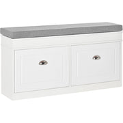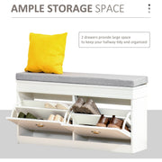 Say goodbye to unnecessary clutter in the hallway and beyond with this shoe storage bench from HOMCOM. Comes with two drawers for organisation each can hold standard four pairs of shoes. There is an adjustable shelf in both drawers if you need to rearrange the storage size. Made from a blend of particle board and MDF, this piece is tough and sturdy. It's finished with a cushioned top so you can sit down comfortably. Suitable for hallways, living space entrances and bedrooms.