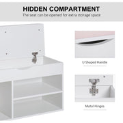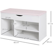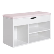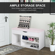 This Shoe Bench from HOMCOM is a great storage solution and organiser for your home. With two shelves to store shoes efficiently and a high-rise compartment for boots, it features a comfortable and convenient padded top for you to sit on, with a hidden compartment underneath that's perfect for storing shoelaces, polish and more. Crafted from high quality particle board, this bench has been built to last and will withstand any daily wear and tear €“ ideal for busy homes and lifestyles.