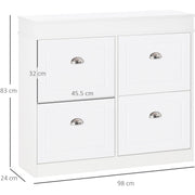 - AMPLE STORAGE SPACE: Features 4 drawers, each drawer with 2 compartments, this shoe cabinet has a total capacity of 32 pairs for your shoes. (The largest size is UK 8/ EU43)
