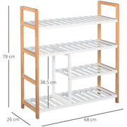 Let the simple elegance of this storage bench, from HOMCOM, keep your shoes, boots, trainers and other pieces of footwear stored in style. The brown and White colourway will fit into any style room with ease. Made from a blend of solid wood and MDF, the frame is solid and durable for enduring use. A four-tier design, its open approach allows you to grab what you need easily and allows air to circulate through to prevent odour build-up. The tall corner compartment gives room for boots and larger shoes. Keep your home neat and tidy in the most effortless way possible.