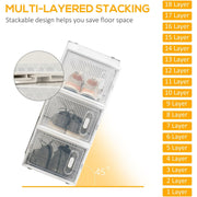 - AVOID FRAGILE BOX ANY MORE : Constructed of quality PP material to enhance the stability and durability when in stackable status. And the plastic is sheer enough to see the shoes inside. It makes shoe storage looks consistent and clear.