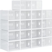Are you tired of shoes on display and in the closet without any boxes and collecting dust? This clear shoe box from HOMCOM made into a customisable design. 18 cubes that can be set up in any way you wish, a cut out design on top securely stack one box on top of another, making it ideal for fitting into any size and shape space hassle-free. With clear plastic sheets, you can find items quickly. A great piece to your house!