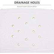 - SLIDE PROOF SUCTION: Each foot is equipped with a mould-proof, suction cup to help stabilize the chair, which paired with the draining, textured seat, helps prevent unwanted sliding and falling during showers or baths.