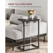 • Efficient Design: The C-shaped structure with a low 2.8 cm bottom frame slides smoothly under sofas, allowing the 66.7 cm high tabletop to fit over sofa arms, offering easy access to items.