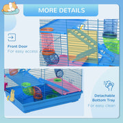 Keep your small pets stimulated, safe and happy with a Multi-level indoor small animal cage kit from PawHut. This animal-friendly design offers multiple platforms for exercise, fun, relaxation, and exploration for small pets like hamsters, mice, gerbils, etc. This hamster cage starter kit includes the main habitat, water bottle, food dishes, and exercise wheels. Play tubing system promotes activity and allows your small pet to move freely. Don't hesitate to buy it!