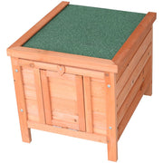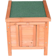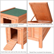 This outdoor pet shelter and rabbit hideaway house from PawHut is the perfect retreat for your furry friend. Made from fully treated and grooved fir wood and designed as a living room for sleeping and playing. The front door opens into a ramp that allows your pets to climb into it easily. The weather-resistant roof is covered in durable composite shingles and will protect your furry friends from adverse weather such as rain, snow, sun, and wind. The raised floor of this house helps keep out insects and other animals and helps avoid trapped moisture. Height adjustable roof opens to the inside for easy cleaning and maintenance. The adjustable arm keeps the roof propped open for climate control.