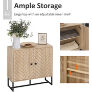 Let the modern styling of this cabinet from HOMCOM make a statement in your home this season. The two doors are embossed with a downwards arrow design for a cool and unique look. Inside, an adjustable shelf sits to give you organised storage room, with handles on the doors for easy access. Using a blend of MDF and particle board, the frame is solid and reliable, with the metal base ensuring balance and stability, whilst elevating the unit to help prevent damage to the bottom. It's finished with a protective coating all over, making it superbly smooth and easy to keep clean. For a matching look in your home, why not match with HOMCOM skus 831-260, 831-258, 831-259 and 838-043?