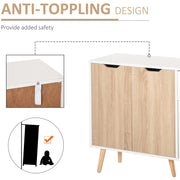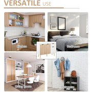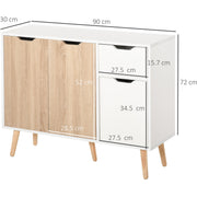 Keep your home stylish and the space tidy: look no further than this freestanding cabinet from HOMCOM. Cut to a clean boxy shape for simplicity, it comes with two large cupboards, a smaller cupboard and a top drawer, giving an abundance of handy storage. The white frame is clean, with the mix of white doors and coloured doors adding a unique point of difference so it stands out. Made from particle board, this piece is durable, finished with five wooden legs so it stands steady and back straps so it doesn't topple over.