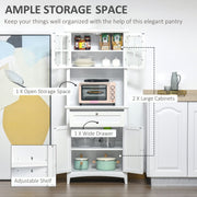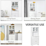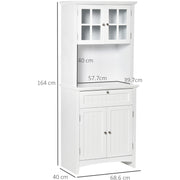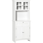 Create more storage space with this freestanding kitchen cabinet from HOMCOM. It features two separate cabinets, an open middle area and a wide drawer to fulfill all storage needs. The top cabinet comes with glass panel doors so you can see inside easily, and both the top and bottom spaces have adjustable shelves. The durable MDF structure is finished with a smooth coat of paint for extra protection, finished with anti-tipping straps on the back for safety.