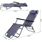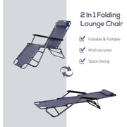 2-in-1 Folding Grey Sun Lounger Chair with Pillow