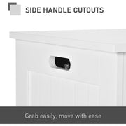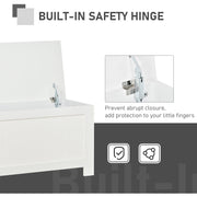 Deep and wide, this spacious chest from HOMCOM is the perfect piece for keeping your home tidy where needed. Made of particleboard, it's durable and easy to maintain and it features safety hinges so fingers don't get caught when opening and closing the lid. There are two handles so it can be carried with ease. With its simple shape and clean White colour, this versatile piece will welcome itself in all bedrooms, hallways and playrooms galore.