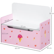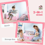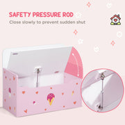 2-IN-1 Wooden Toy Box: Pink Cute Pattern, Safety Rod