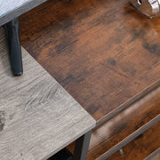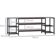 Upgrade your living room with this HOMCOM TV unit. It has six shelves and a large table-top: room for holding a TV and all the watching essentials you need. The open shelves of the TV stand are suitable for fitting plenty of differently-sized appliances. The black metal frame means a strong structure, whilst the wood-effect shelves create a striking look for industrial style. A must-have companion for every relaxing moment.