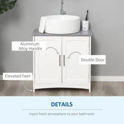 - BATHROOM SINK CABINET INFORMATION: Overall Dimension: 60W x 33D x 60Hcm, Suitable for Washbasin: 50L x 20Wcm. Max Load: (Total)40kg, (Shelf)5kg. Assembly required.