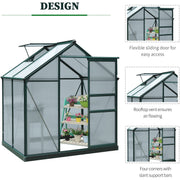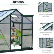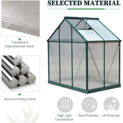 Step into a world of greenery with this Outsunny walk-in greenhouse! With a sturdy aluminium frame and UV-resistant polycarbonate sheets, it's the perfect environment for your plants to thrive. The sliding door design offers easy access, while the rooftop vent panel ensures proper ventilation. Whether you're a seasoned gardener or a newbie, this greenhouse is the perfect addition to your garden oasis!