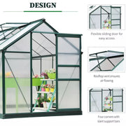 6x8ft Polycarbonate Greenhouse, Slide Door, Clear