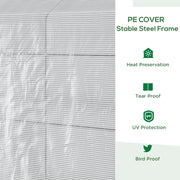 PE COVER: Provides shelter for crops from wind, rain, and harsh sunlight. Overlong cover provides added stability.