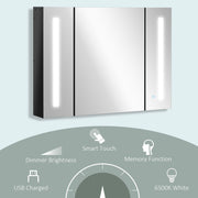 - SMART LIGHTING: This bathroom wall cabinet features 6500 K White LED lighting, powered by USB; you can change the brightness with its touch sensor, and it is capable to remember your settings the next time you use it