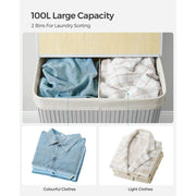 Grey Bamboo Laundry Basket, 2 Sections by Songmics