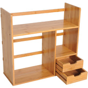 Bamboo Desktop Bookshelf Desk Organiser with 2 Drawers