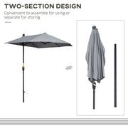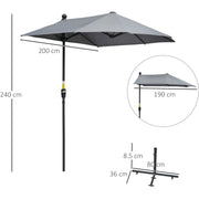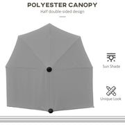 Need a garden parasol for the seasons head, but limited on space? Go for this Outsunny half parasol. The half-cut size means it will stand against your wall without any gaps, creating safe shade whether it's against a wall, window or fence. Yet, the extra-long canopy creates more shade than standard, keeping everyone safely protected when relaxing in the sun. Features a crank handle to open and close effortlessly, with a base included to stand in place (just ensure you use weights).