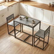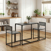 3 Piece Dining Table and Stool Set With Wood Effect Finish for Small Spaces, Charcoal Grey, 90L x 47W x 76H cm