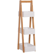 Get creative with your storage space for any decor with this deluxe product from HOMCOM. Manufactured from Durable natural woody material and MDF to provide long lasting product life. Increased functionality with 3-tier storage makes it ideal for any decor, Bathroom, Livingroom or Kitchen. The product offers A Shape Design and Natural, Smooth finish with rounded corners making it kids friendly.