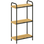 HOMCOM Freestanding Bamboo & Steel Bathroom Shelf Unit