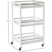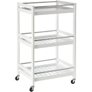 3-Tier Kitchen Storage Trolley, Steel Bars, 4 Wheels, White