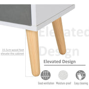 Let style and storage effortlessly blend into one with this freestanding cabinet from HOMCOM. It features cloth drawers for discreet organisation, with handles for easy opening and closing, with the option of taking them away if not required. The open compartments cater for display of your belongings. Made from particle board for everyday wearability, it is finished with four wooden legs, allowing air to circulate for freshness and helping prevent damage to the bottom of the frame.