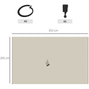 - EACH SIDEWALL DIMENSIONS: 352L x 205H cm.