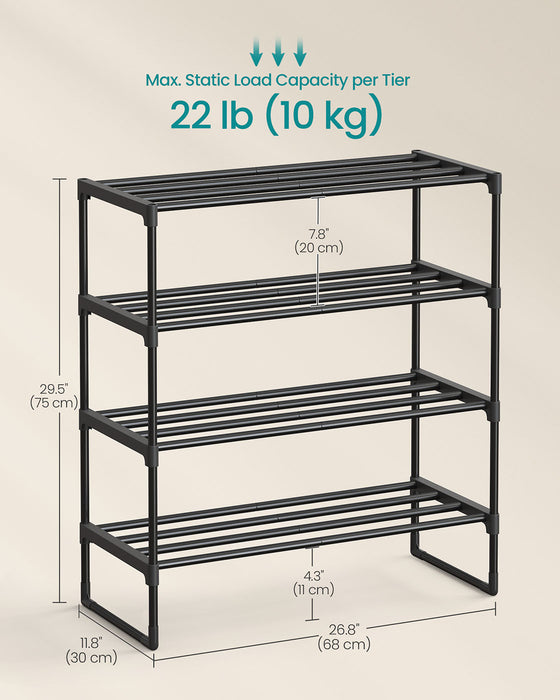 4 Tier Black Shoe Rack Stackable Storage Organiser Holds Up To 16 Pairs by Songmics