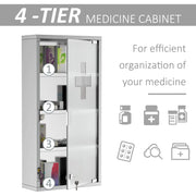 - FOUR-TIER: Four shelves inside for efficient organisation great when certain medicines need to be kept away from each other. LOCKING DOOR: Frosted on the front for privacy, it can be kept shut securely for safety. Magnetic on the edge for easy opening and closing.