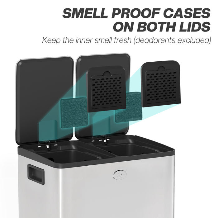 40L Double Kitchen Recycling Bin Stainless Steel with Deodorisers Silver by Homcom