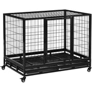 43" Large Heavy Duty Dog Kennel with Wheels, Black