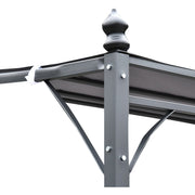 Give yourself a spot to take shade and shelter outdoors with this pergola-style gazebo from Outsunny. It is crafted into a 250 x 397cm design, consisting of a taller back and short front, with a waved connecting frame covered with a top 180gsm polyester canopy, providing shelter against direct sunlight. With an elegant scroll design on the front, It's finished with four drainage holes on the top to prevent water accumulation and comes with eight ground stakes to pin to the ground.