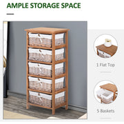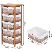 5 Drawer Wicker Basket Shelf, Wooden Frame, Bedroom/Office