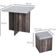 The simple and contemporary 5-piece dining set from HOMCOM is an elegant space-saving dining set ideal for small houses and apartment. The ottoman-style chairs open to reveal convenient storage for magazines and other accessories. Tuck the chairs directly beneath the table of this space-saving dining set to free up floor space when they are not in the use. Wood grain design is stylish and complements to any dining decor.
